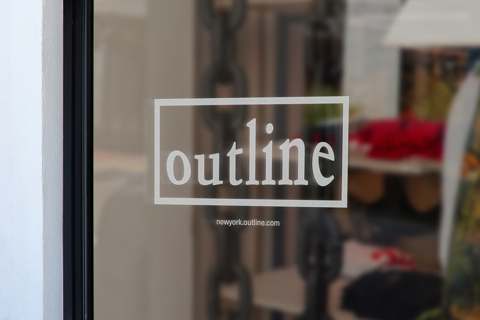 In contrast to the refined hairline logo and wordmark featured in the branding collateral and magazine, the consumer facing end of the brand depicts a bold and more playful version of the companies branding. The apparel line is intended to represent the more casual end of the Outline brand, drawing its influences from streetwear and providing accessible options to a broader audience.